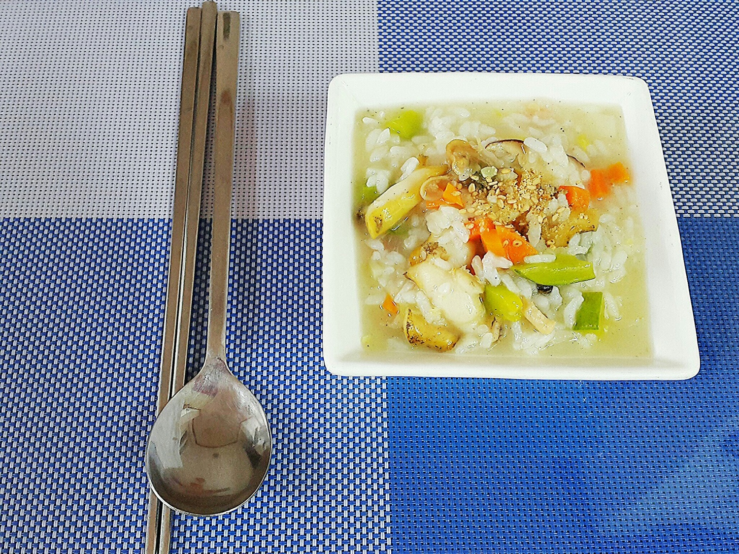 Menambahkan nasi akan dengan cepat menghasilkan bubur yang kental. Tepat sebelum mematikan api, teteskan sedikit minyak wijen lagi untuk menambah aroma gurih yang nikmat. Taburi dengan biji wijen untuk tampilan yang cantik dan lezat. Bubur abalon dan sayuran bergizi Anda siap disajikan!