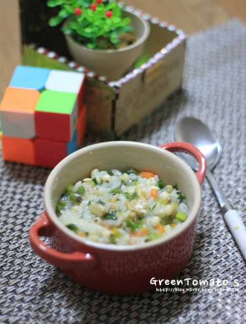 Makanan bayi ini memadukan nasi lembut dengan barley, yang dikenal karena manfaatnya bagi pencernaan dan teksturnya yang menyenangkan. Kami telah menambahkan bayam jepang (purslane), kaya akan vitamin dan diakui karena sifat detoksifikasinya, bersama dengan kerang segar untuk hidangan yang lezat dan kaya nutrisi. Menggunakan kaldu sayuran buatan sendiri dari sisa sayuran akan semakin meningkatkan cita rasanya. Bubur bayi istimewa ini, dengan campuran berbagai sayuran dan biji-bijian, dirancang untuk memenuhi selera dan kesehatan bayi Anda.