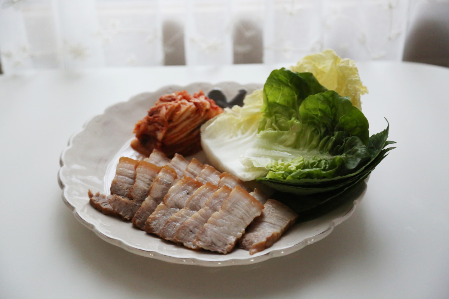 Sajikan Suyuk lezat Anda dengan kimchi yang sudah difermentasi dengan baik, daun selada segar, irisan bawang putih, dan ssamjang (saus cocol) untuk hidangan yang lengkap dan memuaskan. Nikmati selagi hangat untuk pengalaman rasa terbaik!