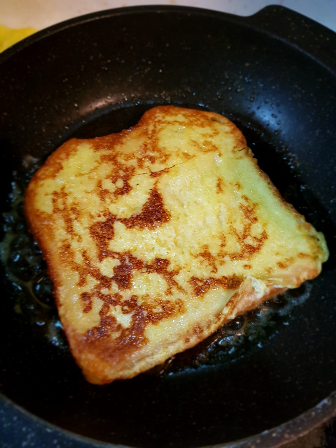Masak sekitar 2-3 menit di setiap sisi, atau hingga kedua sisi berwarna coklat keemasan yang indah dan sedikit renyah. Balik dengan hati-hati menggunakan spatula. Setelah kedua sisi matang sempurna, French toast Anda siap disajikan! Nikmati selagi hangat dengan topping favorit Anda seperti sirup maple, madu, gula bubuk, atau buah segar.