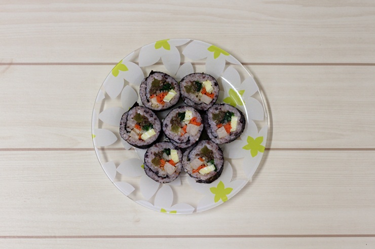 Gimbap namul ini adalah cara yang bagus untuk memanfaatkan sisa sayuran yang dibumbui, terutama setelah hari raya seperti Chuseok. Ini adalah gimbap yang bergizi dan lezat dengan keseimbangan rasa namul yang beragam dan nasi.