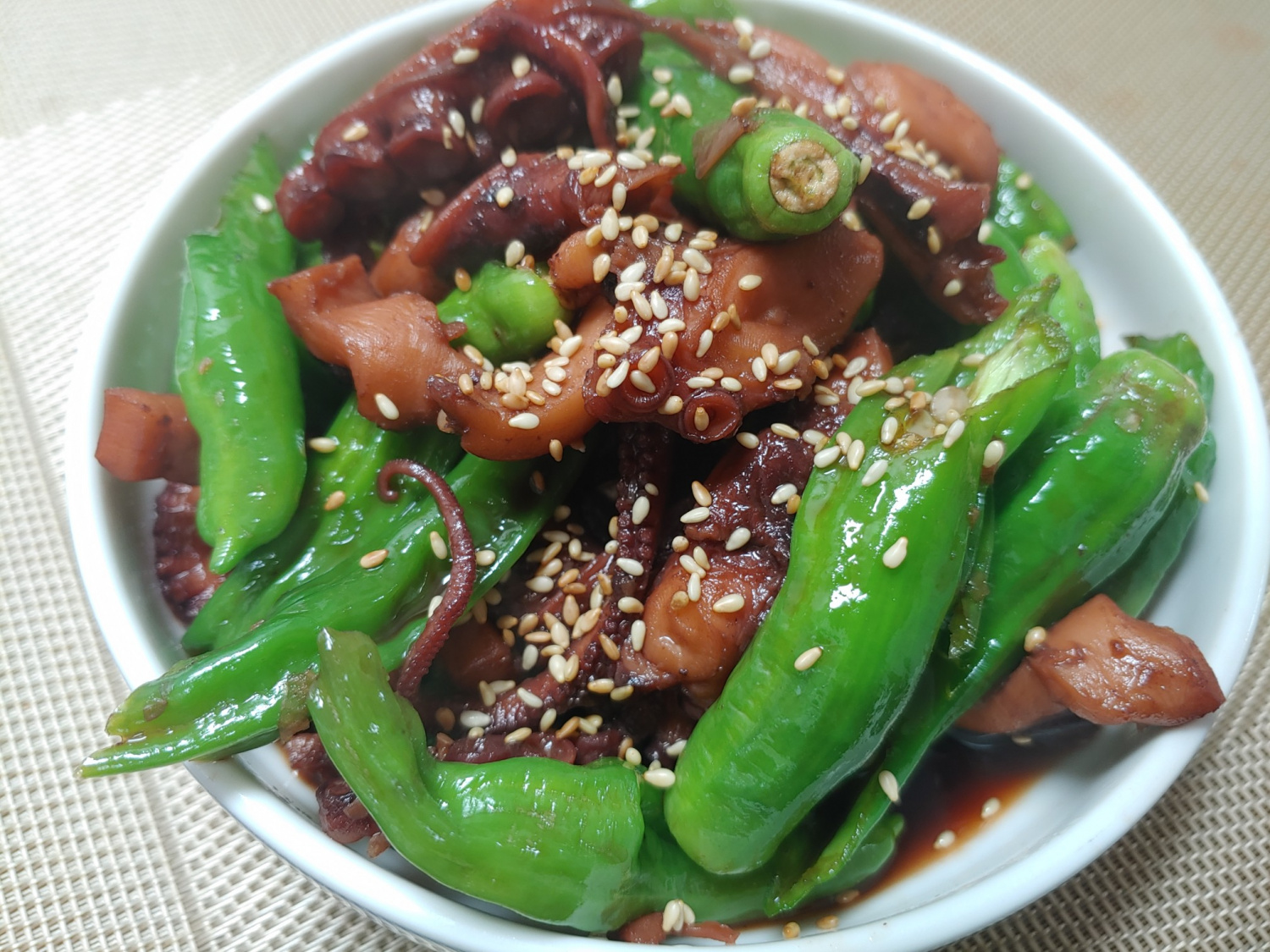 Hidangan ini adalah kombinasi luar biasa dari gurita kenyal dan paprika hijau yang harum dan renyah. Saus yang mengkilap membuatnya menjadi lauk yang tak tertahankan untuk nasi! Ini adalah makanan sehat dan beraroma yang akan membantu memulihkan energi keluarga Anda. Selamat menikmati! ^^