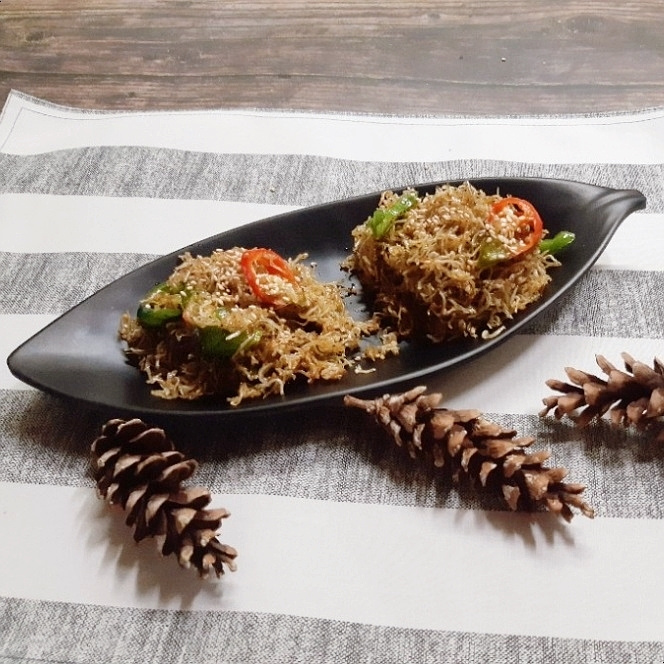 Pertama, panaskan wajan dengan api kecil. Tanpa menambahkan minyak, sangrai ikan teri kering kecil di wajan selama sekitar 1-2 menit. Ini membantu menghilangkan bau amis dan membuatnya ekstra renyah. Terus aduk agar tidak gosong.
