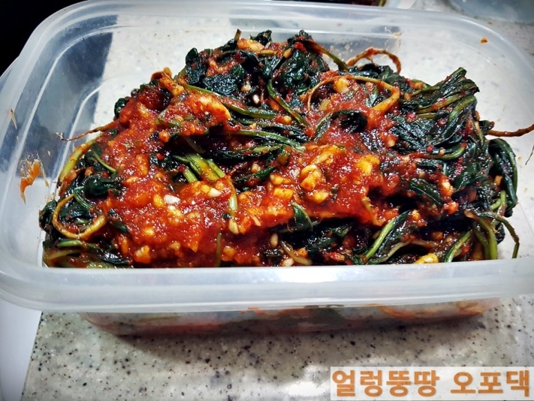 Sekarang, cukup tambahkan campuran bumbu lezat yang sudah disiapkan ke Godulbaegi yang sudah matang. Campur semuanya dengan lembut dengan tangan Anda hingga terlapisi rata. Kimchi Godulbaegi lezat Anda siap! Teksturnya yang renyah dan rasa pahit yang menyenangkan pasti akan membangkitkan selera makan Anda.