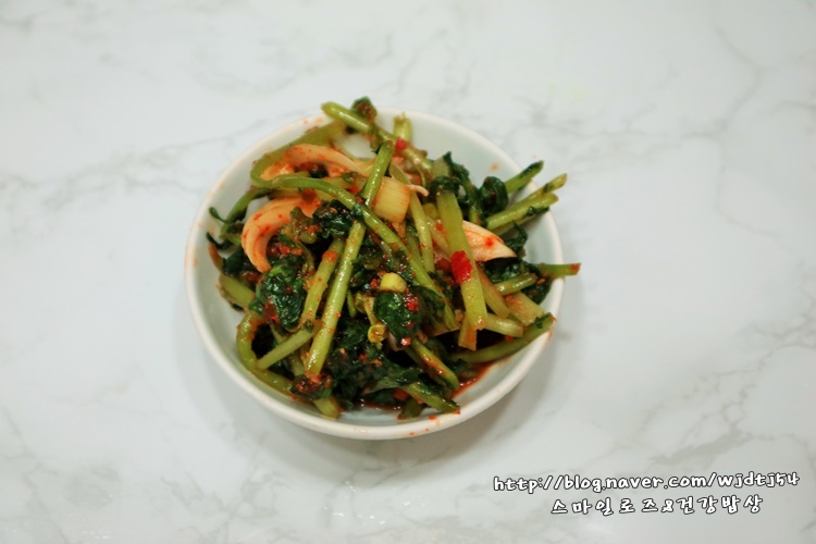 Bilas lobak muda yang sudah difermentasi 1-2 kali dengan air dingin untuk menghilangkan kelebihan garam dan tiriskan dengan baik. Tuang saus bumbu kimchi yang sudah disiapkan ke atas lobak muda. Aduk perlahan agar lobak muda terlapisi bumbu secara merata. Hindari mengaduk terlalu kuat, karena dapat membuat lobak menjadi lembek dan memberikan rasa mentah. Tangani dengan lembut.
