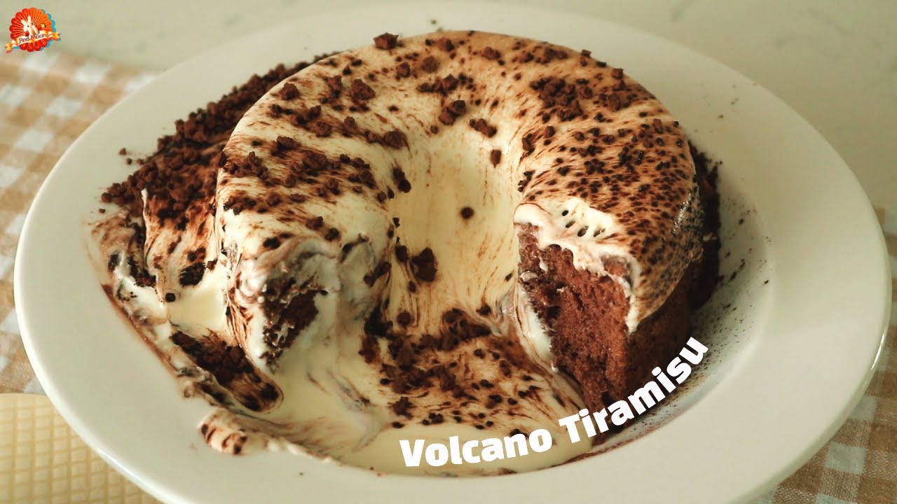 [Resep Dessert Klasik] Kue Chiffon Tiramisu Volcano dengan Keju Lumer yang Artistik!!