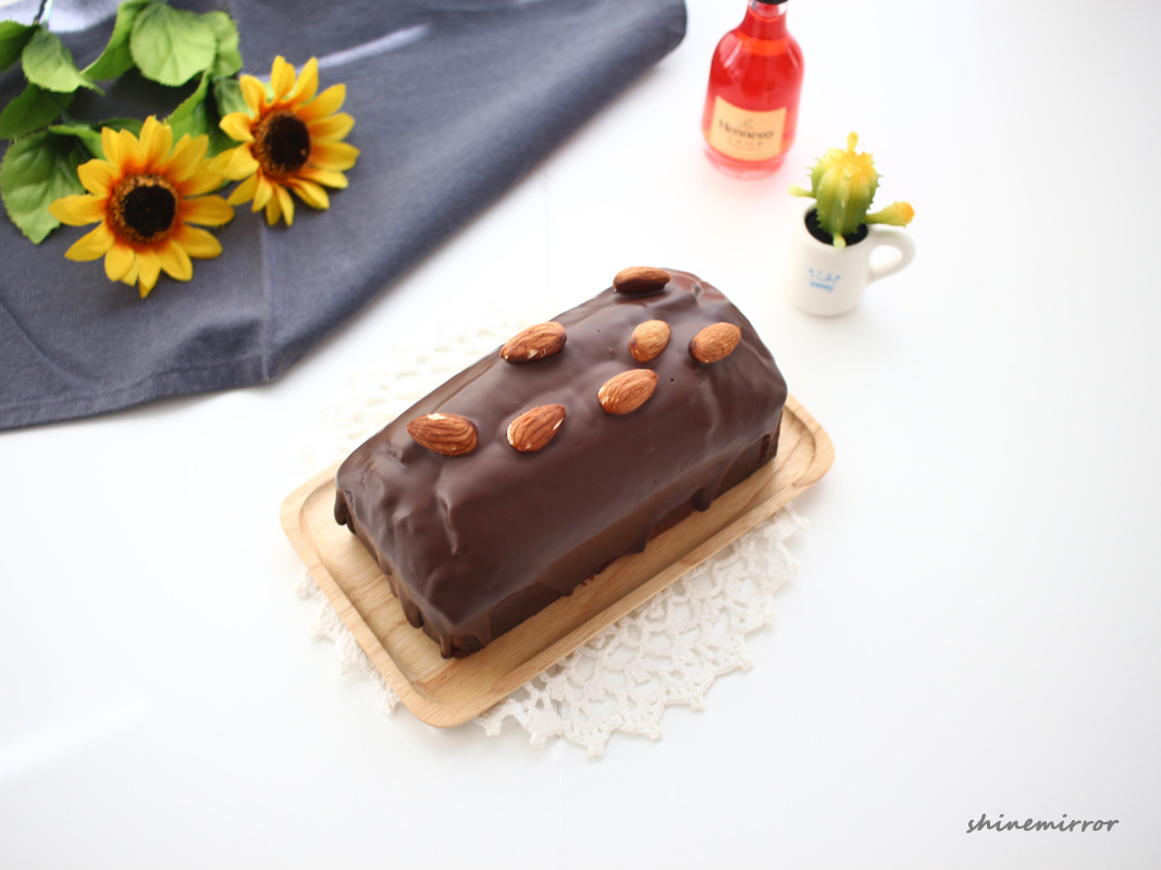 Siramkan cokelat leleh di atas permukaan kue yang sudah dingin dan lembap sirup sesuai pola yang Anda inginkan. Selagi cokelat masih basah, hias dengan 8g almond utuh secara dekoratif. Dinginkan di lemari es atau tempat sejuk hingga cokelat benar-benar mengeras. Untuk rasa kopi yang lebih kaya, simpan kue dalam wadah kedap udara selama kurang lebih satu hari sebelum disajikan.