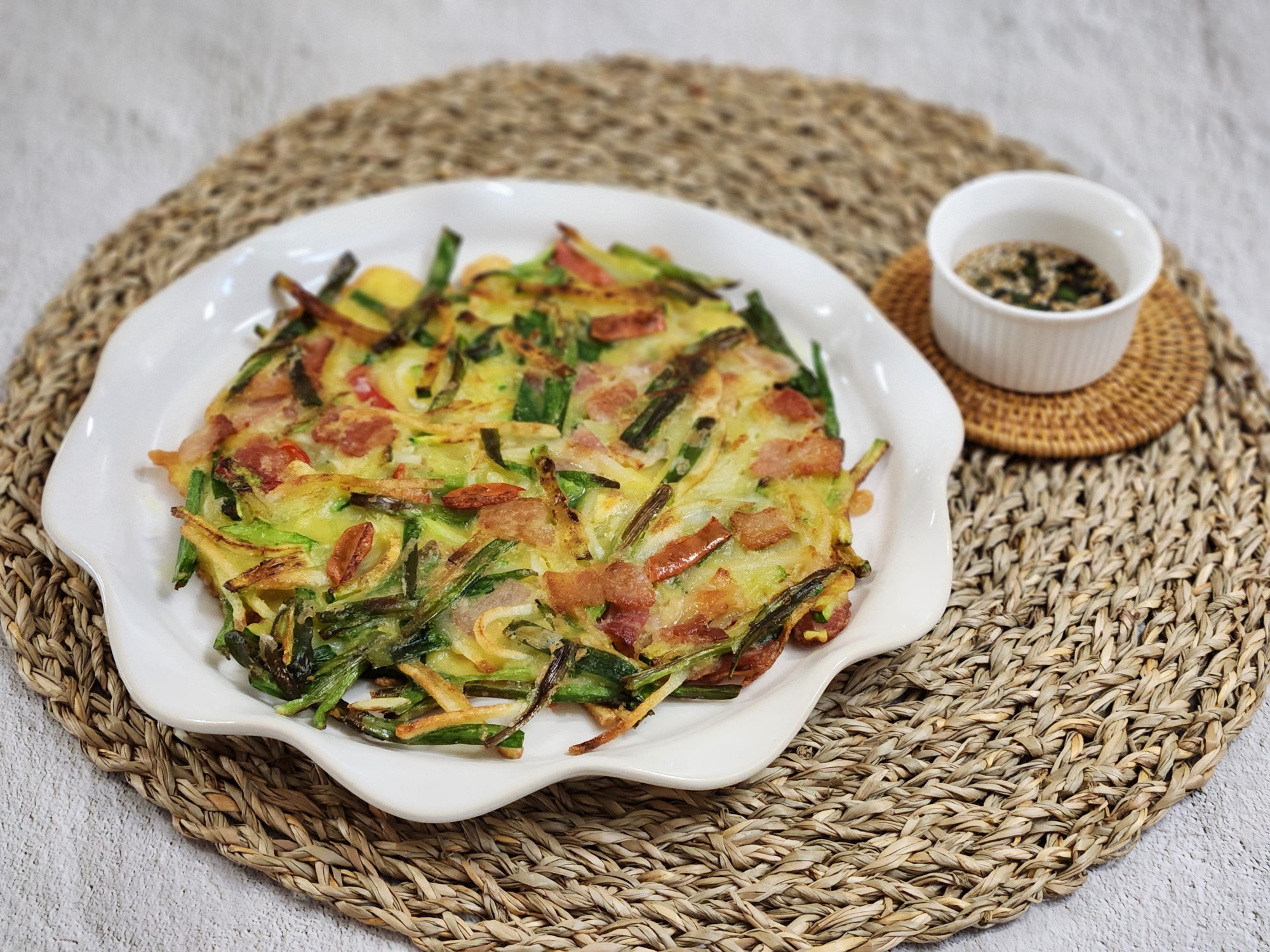 Meskipun lezat saat panas, martabak zukini dan kucai ini tetap renyah bahkan saat dingin! Nikmati dengan saus cocolan yang segar dan gurih!