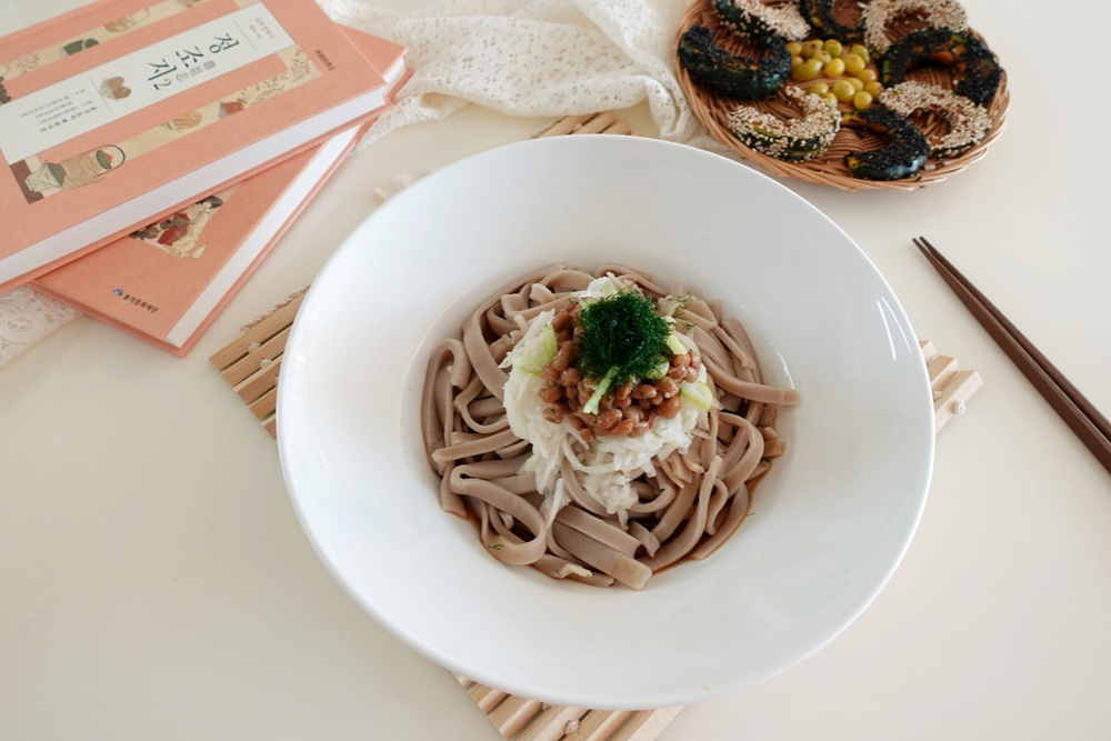 Resep ini adalah interpretasi modern dari metode memasak tradisional yang ditemukan dalam ‘Imwongyeongjeji,’ sebuah ensiklopedia bersejarah Korea. Untuk suami saya, yang menyukai hidangan mi, saya telah menciptakan makanan sehat dengan menggunakan gandum sarraceno (buckwheat) daripada tepung beras untuk menurunkan kalori dan memasukkan bahan-bahan musiman seperti ubi (yam) dan labu untuk meningkatkan kekebalan dan kesehatan pencernaan. Menu yang ringan namun bergizi ini sempurna bagi mereka yang sedang diet, menghindari makanan berminyak. Gairah saya untuk masakan tradisional, yang terinspirasi oleh teks-teks seperti ‘Jeongjoji,’ sebuah volume kuliner dalam ‘Imwongyeongjeji,’ telah membawa saya ke resep unik ini. ‘Jeongjoji’ bukan hanya buku masak; ini adalah harta karun pengetahuan untuk mempelajari dasar-dasar memasak, dengan penjelasan terperinci tentang setiap bahan. Meskipun saya telah sedikit mengadaptasi metode tradisional agar sesuai dengan selera suami saya, dia memujinya sebagai pilihan yang sangat baik bahkan untuk makanan diet! Melihatnya begitu menikmatinya membuat saya merasa sangat gembira dan bangga. Merefleksikan ketergantungan saya di masa lalu pada makanan cepat saji dan praktis karena jadwal yang sibuk, saya sekarang bercita-cita untuk memperkaya meja keluarga kami dengan hidangan sehat yang terbuat dari bahan-bahan tradisional kami. Saya mendorong Anda untuk merasakan makanan yang merayakan rasa alami produk musiman!