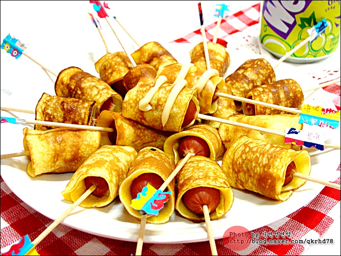 Panaskan wajan anti lengket dengan api kecil dan tambahkan sedikit minyak goreng. Lap wajan dengan tisu dapur untuk melapisi permukaannya tipis-tipis dengan minyak; ini mencegah adonan menempel. Selanjutnya, ambil sekitar 1 sendok makan adonan pancake dengan sendok sayur atau sendok dan ratakan tipis di wajan. Begitu Anda melihat gelembung-gelembung kecil muncul di permukaan adonan, menandakan adonan mulai matang, letakkan sosis yang sudah disiapkan di tengah dan gulung adonan dengan hati-hati di sekelilingnya. Adonan akan matang dan membungkus sosis. Jaga api tetap kecil agar matang merata tanpa gosong.