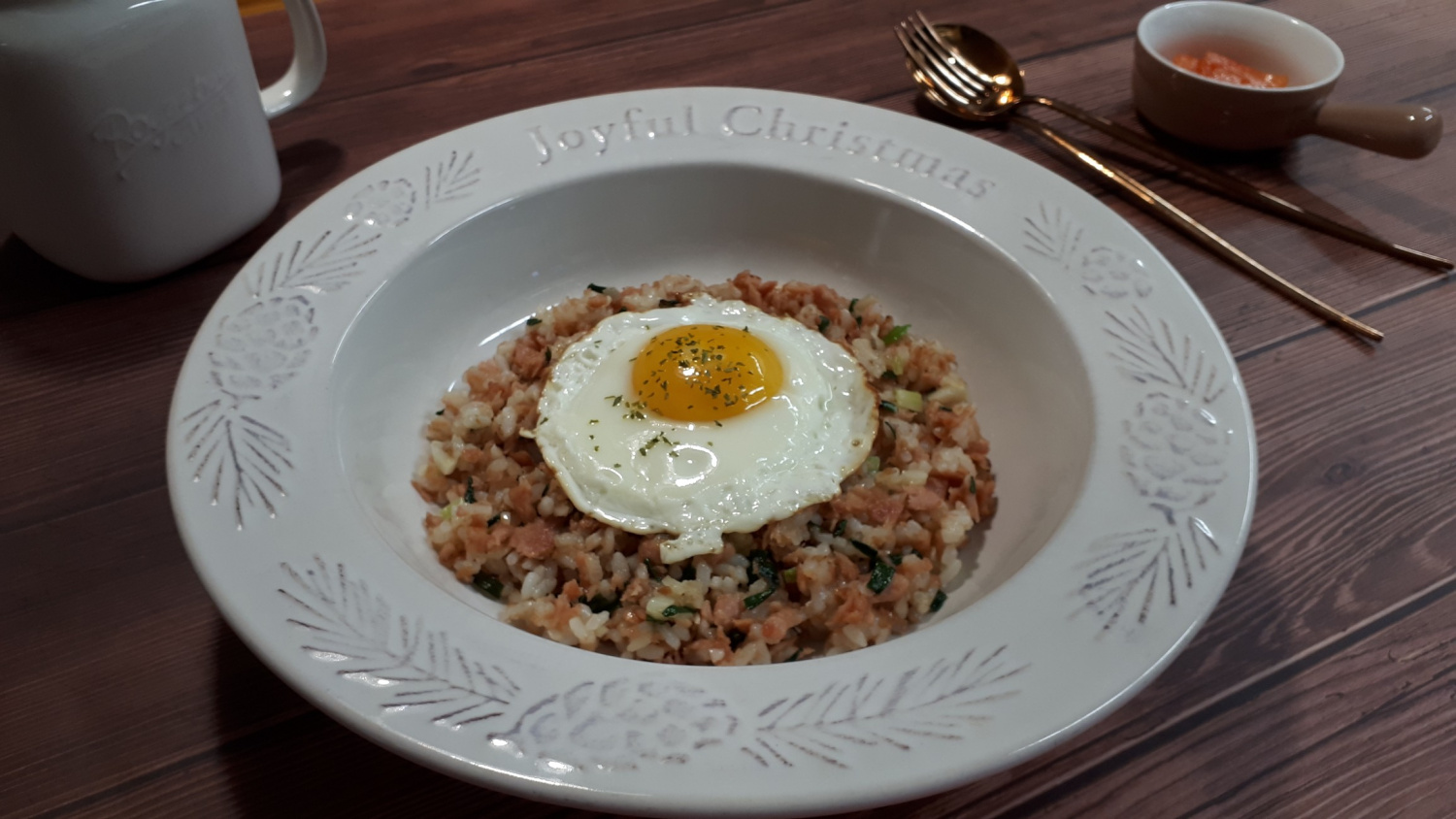 Sajikan nasi goreng Spam lezat Anda dengan telur mata sapi di atasnya untuk hidangan yang lengkap dan memuaskan! Pecahkan kuning telur dan campurkan dengan nasi untuk rasa yang lebih kaya. Selamat menikmati hidangan Anda!