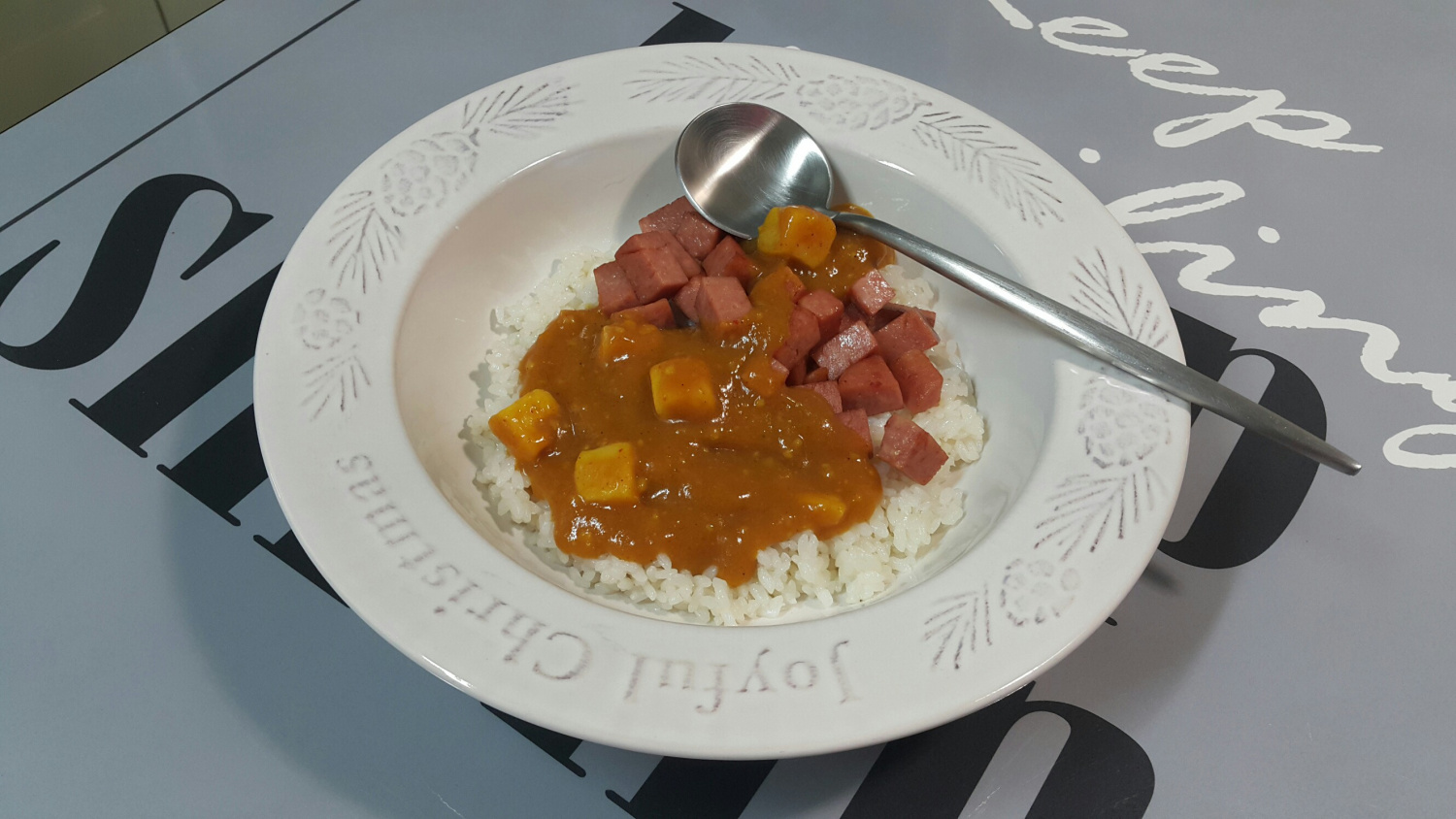Hehe~^^ Sajian semangkuk cerdik dan memuaskan: Nasi Kari Spam!