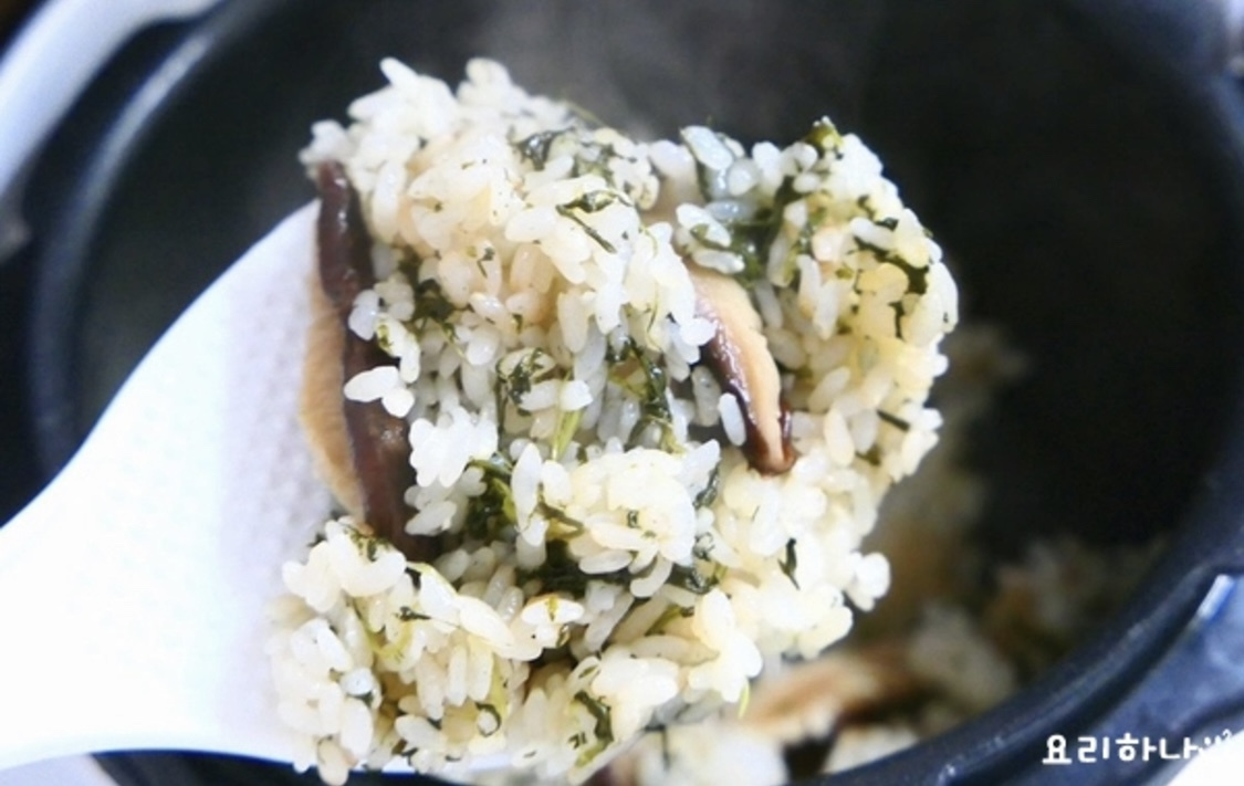 Jamur menambahkan tekstur kenyal yang indah yang kontras dengan baik dengan nasi yang lembut. Aroma halus mugwort dan rasa umami dari jamur menciptakan perpaduan harmonis yang meningkatkan keseluruhan hidangan. Untuk sentuhan kesegaran dan daya tarik visual ekstra, Anda juga bisa menaburkan sedikit mugwort segar di atasnya setelah matang.