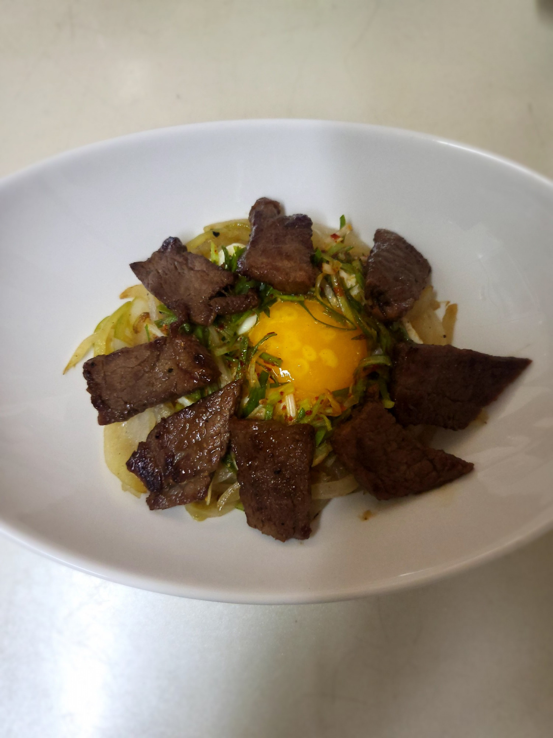 Sekarang, siapkan telurnya. Kami merekomendasikan untuk menggorengnya sesuai selera Anda. Telur mata sapi dengan kuning telur yang sedikit cair sangat lezat karena bisa tercampur dengan nasi dan daging, menciptakan saus yang kaya.