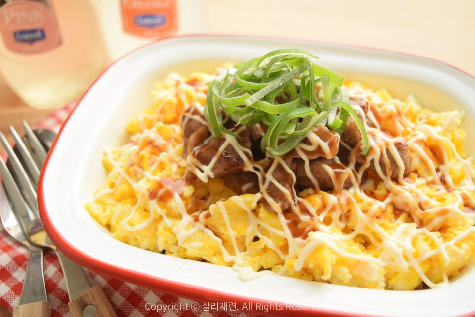 Kelembutan telur orak-arik yang halus, rasa tteokgalbi yang manis dan gurih, serta mayones yang creamy dan saus donkatsu yang beraroma berpadu secara harmonis. Ini adalah hidangan satu mangkuk yang sangat memuaskan, sempurna untuk dinikmati tanpa repot.