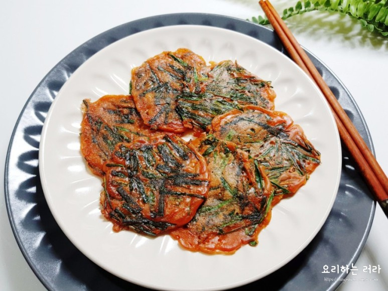 Pancake lezat ini dibuat dengan mencampurkan gochujang (pasta cabai Korea) dalam jumlah banyak ke dalam adonan, lalu menambahkan irisan daun bawang dan menggorengnya hingga kecokelatan. Hasilnya luar biasa lezat! Sangat penting untuk menambahkan gochujang yang cukup agar rasanya yang kaya menonjol; jika tidak, rasanya mungkin seperti pancake biasa alih-alih ‘jangtteok’ (pancake pasta) yang beraroma. Nikmati kombinasi sempurna dari tekstur pedas, gurih, dan kenyal!