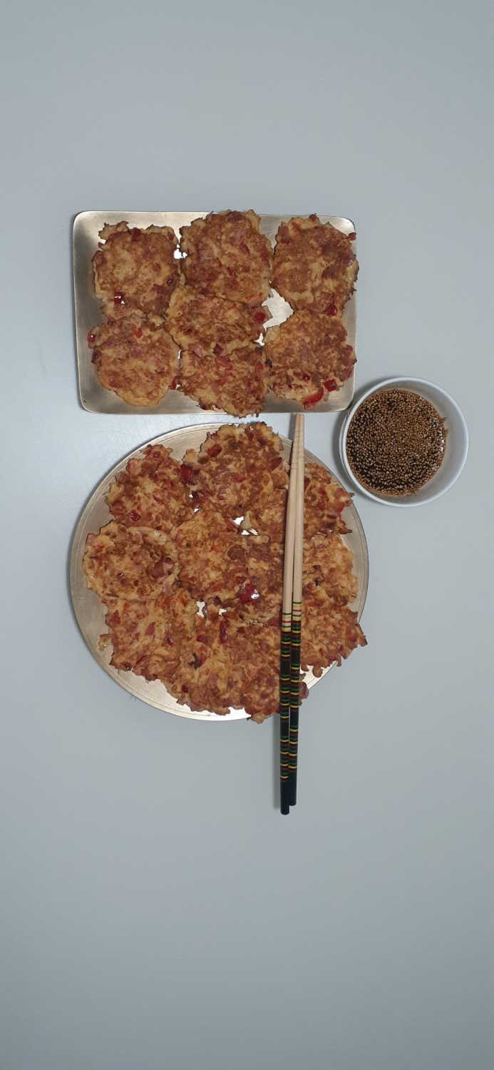 Kunci di sini adalah TIDAK menggunakan air! Alih-alih garam, bumbui adonan dengan 2 sendok makan ekstrak tuna yang gurih. Kelembapan dari jamur enoki dan telur akan memberikan konsistensi yang sempurna.