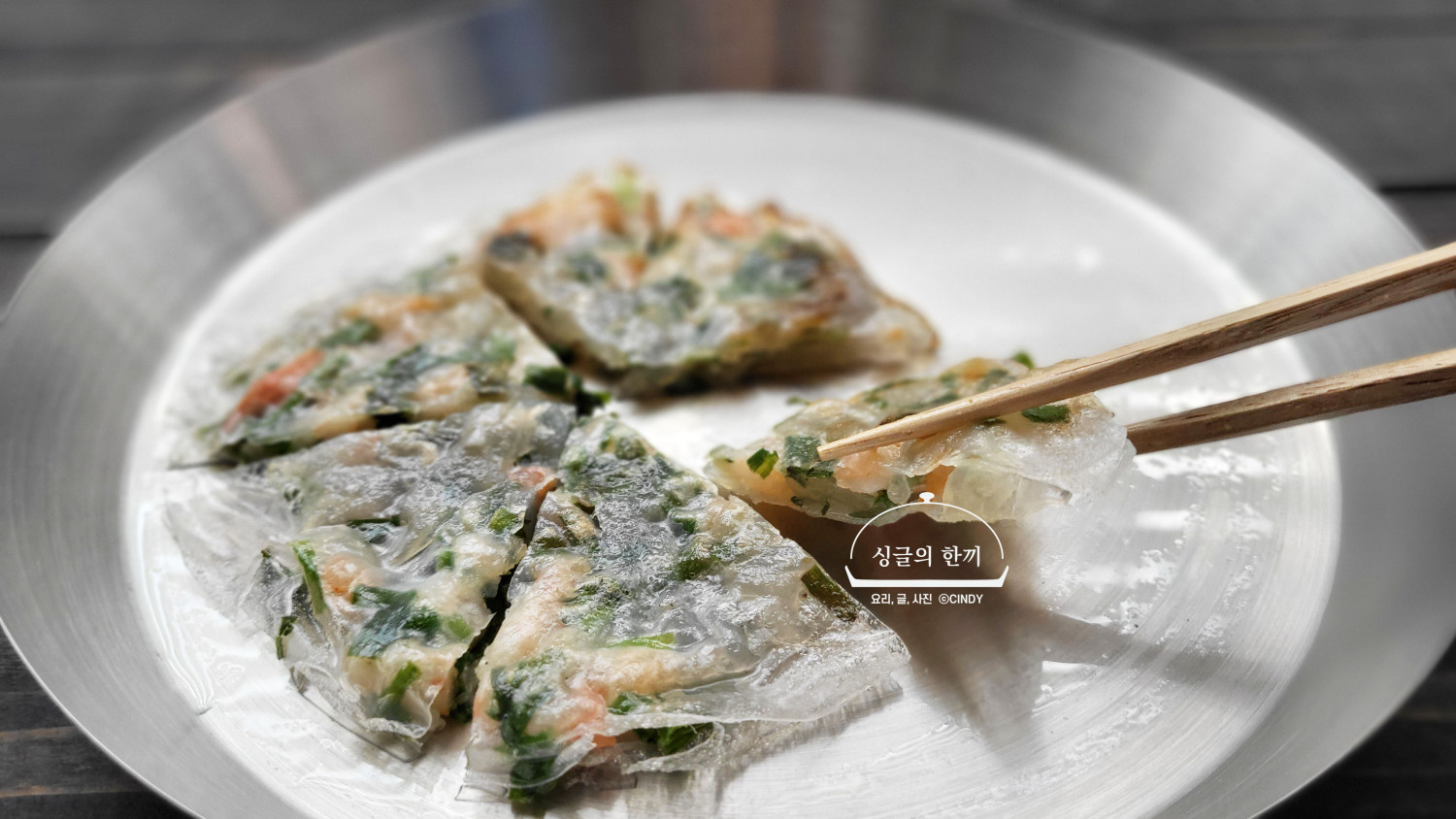 Ketika pancake hampir matang, permukaannya akan berwarna keemasan dan renyah. Jika Anda memasaknya sedikit lebih lama, pinggiran kertas beras mungkin akan sedikit berubah warna menjadi cokelat, mirip dengan tekstur kerak nasi panggang (nurungji), menambah kerenyahan ekstra yang lezat.