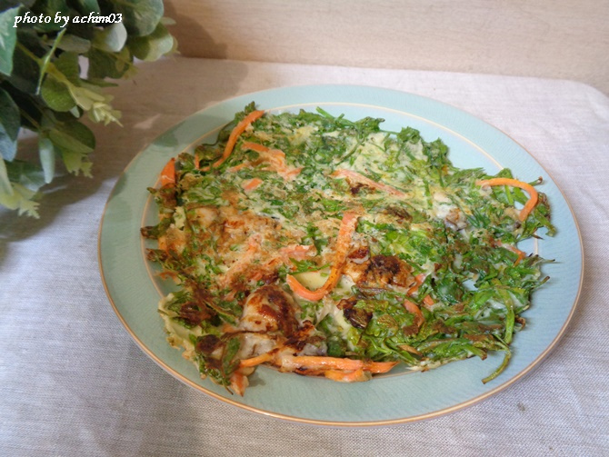 Krimi air dengan aroma yang menyenangkan~~ Pancake krimi dan tiram adalah camilan yang sempurna untuk dinikmati bersama Makgeolli! Cobalah membuat dua pancake, dan segera setelah matang, sobek dengan sumpit dan nikmati kelezatannya! Pancake ini penuh dengan aroma segar krimi air dan rasa gurih tiram, menjadikannya pendamping yang ideal untuk segelas anggur beras Korea.