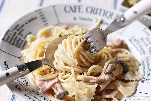 Pasta Krim Lezat dengan Telur Ikan Terbang dan Bacon!