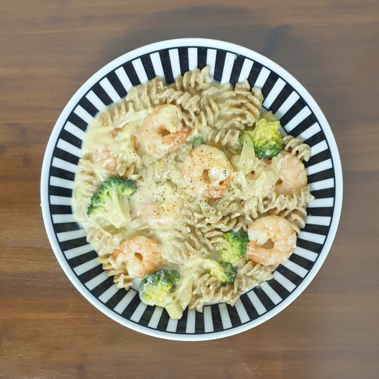 Pasta Krim Udang dengan Fusilli Gandum Utuh