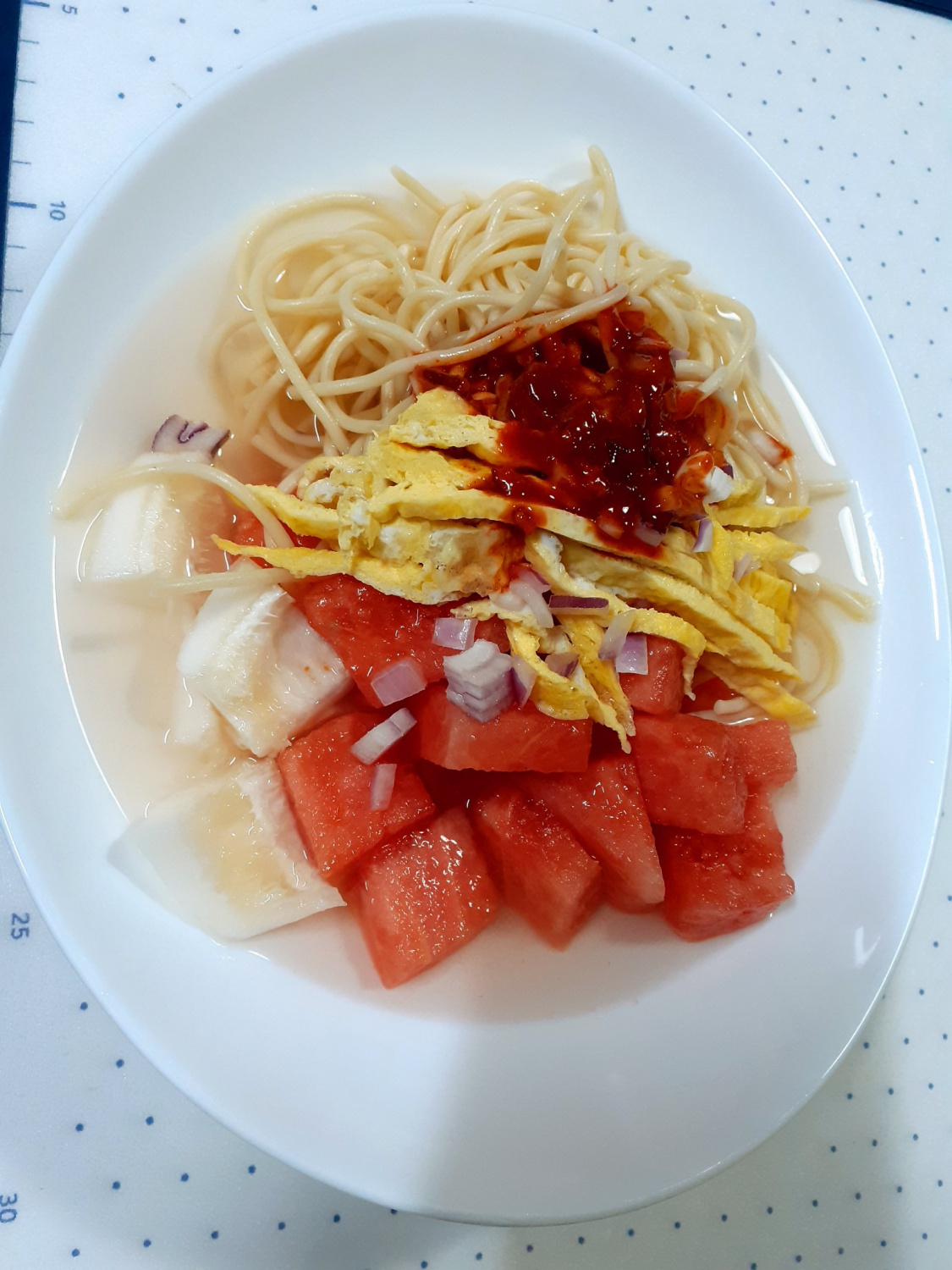 Pasta Semangka Segar dengan Kuah Dongchimi Naengmyeon