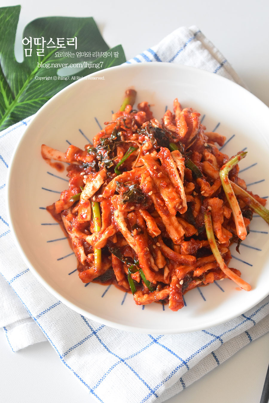 Pindahkan lobak kering dan daun cabai merah yang sudah direhidrasi dan diperas ke dalam mangkuk besar. Tuangkan semua bumbu yang sudah disiapkan di atasnya dan aduk rata dengan tangan Anda, pastikan bumbu tercampur merata ke seluruh bahan.