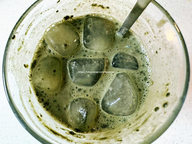 Tuang campuran mugwort misutgaru yang sudah dibuat dengan hati-hati ke dalam gelas yang berisi es batu. Selesai! Latte Mugwort Misutgaru Anda yang harum dan gurih sudah siap. Sangat cocok sebagai pengganti makanan yang cepat, sehat, dan mengenyangkan, atau sebagai minuman bernutrisi. Pastikan untuk mencobanya! ^^
