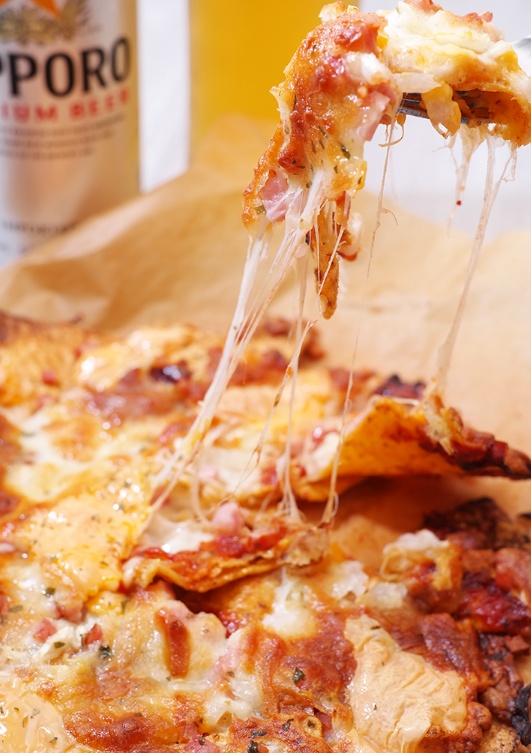 Ubah camilan favorit Anda dari bioskop, yaitu nachos, menjadi pizza yang lezat! Resep ini sangat sederhana, hanya membutuhkan dasar nachos, saus cepat dari saus tomat, dan topping favorit Anda seperti ham dan keju, semuanya dilelehkan di microwave atau oven. Ini adalah hidangan ‘sederhana’ namun ‘memuaskan’, sempurna untuk segala acara. Menggunakan nachos yang sudah akrab, hidangan ini menawarkan sentuhan baru yang menarik yang akan disukai pelanggan. Mengingat banyak bioskop menjual bir, pizza nachos ini adalah pasangan yang sangat baik, berpotensi meningkatkan penjualan makanan dan minuman. Ini juga ideal untuk tren ‘makan sendiri’ yang terus berkembang, menarik bagi mereka yang menikmati menonton film sendirian sambil ditemani minuman.