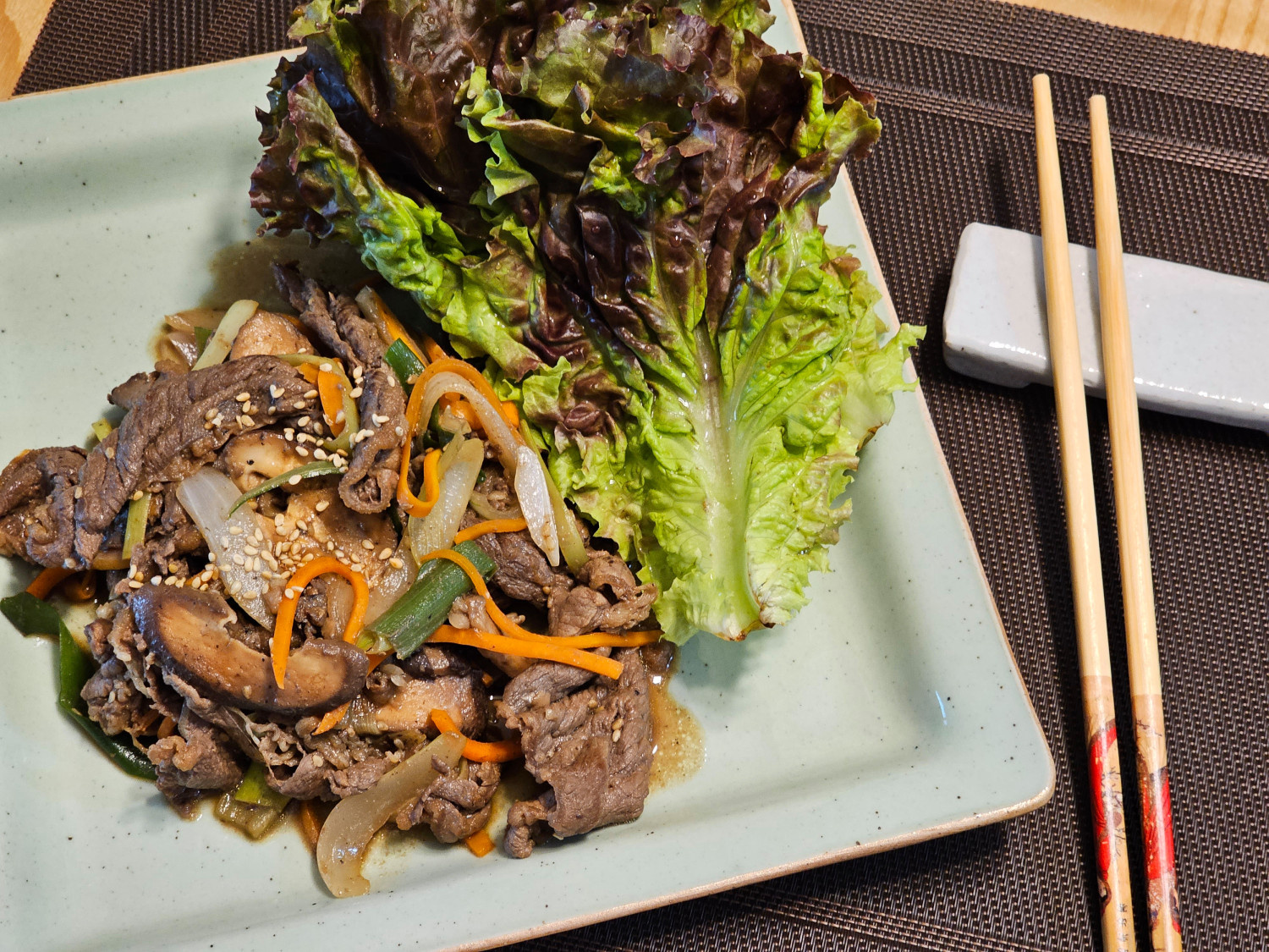 Untuk pengalaman yang lebih menyenangkan, coba bungkus Bulgogi dengan daun selada segar atau daun perilla. Kombinasi sayuran renyah dan Bulgogi yang gurih sangat lezat. Selamat menikmati hidangan Anda!