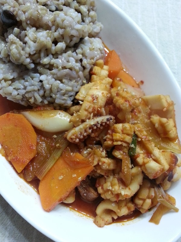 Akhirnya saya bisa memasak di rumah setelah sekian lama! Berkat suami yang biasanya makan di kantor, saya jarang punya kesempatan memasak akhir-akhir ini. Karena nasi di rumah habis, saya memutuskan untuk menguras isi kulkas dan membuat tumis cumi. Awalnya saya mencoba mengikuti resep Baek Jong-won, tapi karena isi kulkas saya kurang memadai, saya akhirnya mengubahnya sesuai selera saya. Meskipun ada modifikasi, hasilnya sangat sukses dan lezat! Cumi yang empuk dengan ukiran, sayuran renyah, dan saus manis pedas yang seimbang sempurna menjadikannya pendamping nasi yang ideal. Rasanya begitu enak, saya sampai ketahuan mencuri-curi makan selagi memasak!