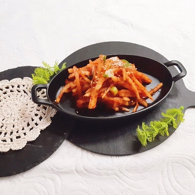 Kami persembahkan resep acar lobak Korea yang lezat dan mudah dibuat oleh siapa saja, menggunakan lobak segar musiman. Teksturnya yang renyah dan rasa manisnya yang lembut sangat istimewa, cocok sebagai lauk pendamping nasi atau bahan bibimbap.