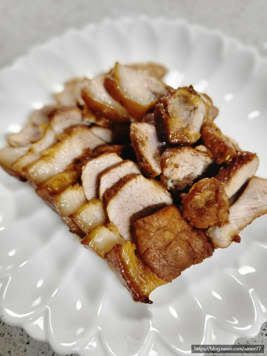 Pertama, siapkan 1kg kaki babi tanpa tulang atau paha babi. Potong menjadi 6-7 bagian seukuran galbijjim (iga semur) agar mudah dimakan. Kemudian, taburkan 4 sejumput garam secara merata untuk bumbu awal. Bumbu ini tidak hanya membantu menghilangkan bau amis tetapi juga meresapkan rasa ke dalam daging.