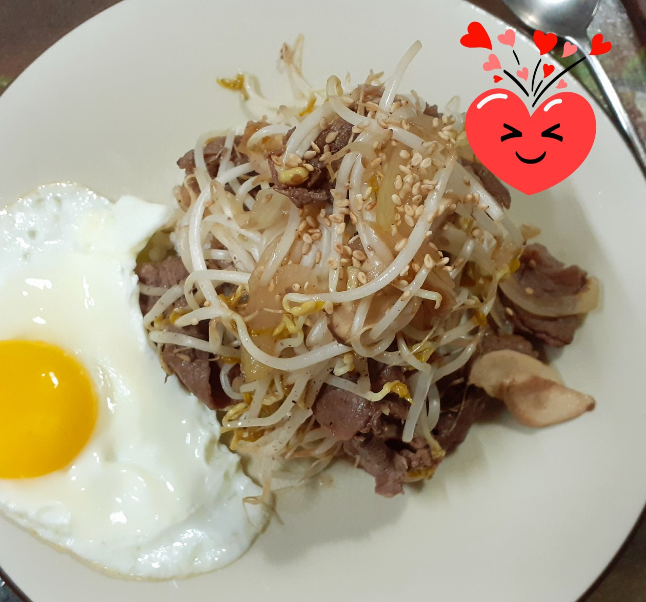 Nasi Daging Sapi Blade Steak ini sangat cocok untuk hidangan yang mengenyangkan, menampilkan saus kecap manis gurih dan sedikit manis yang melapisi nasi dengan murah hati. Kombinasi tekstur yang menyenangkan dari daging sapi yang empuk, tauge yang renyah, dan jamur yang gurih membuat setiap suapan menjadi pengalaman yang menyenangkan bagi lidah Anda.