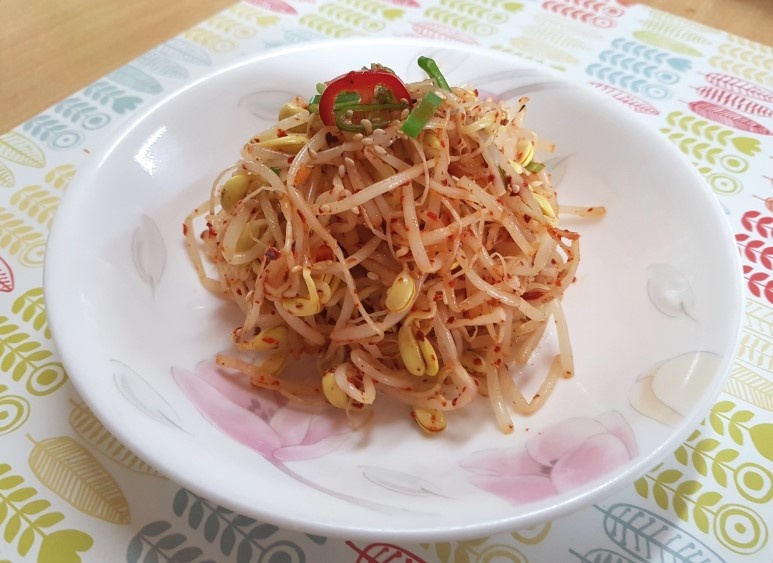 Masukkan tauge yang sudah ditiriskan ke dalam mangkuk. Tambahkan 1 sdm bubuk cabai Korea, 1/2 sdm bawang putih cincang, dan 1 sdm kecap ikan. Aduk dan campur bahan-bahan dengan lembut menggunakan tangan Anda hingga bumbu tercampur merata. Berhati-hatilah agar tidak menghancurkan tauge; sentuhan lembut adalah kunci untuk menjaga teksturnya.