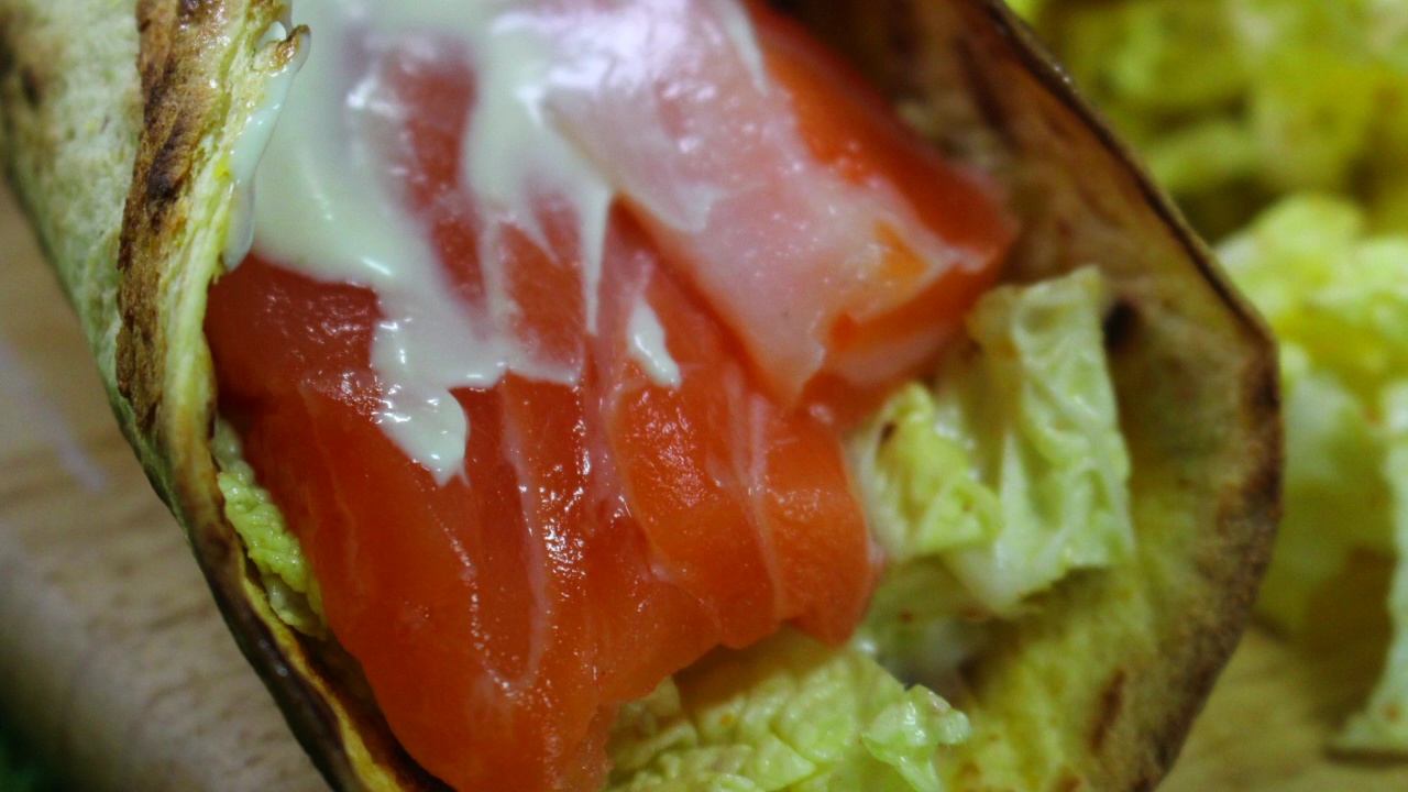 Saya sangat suka salmon, jadi biasanya saya membelinya untuk dinikmati sebagai sashimi. Suatu hari, terinspirasi oleh tacos steak Gordon Ramsay dan tortilla yang saya miliki di rumah, saya memutuskan untuk membuat tacos salmon unik saya sendiri! Resep ini menggabungkan kesegaran salmon yang lembut dengan sayuran renyah dan saus mayo wasabi yang segar, semuanya dibungkus dalam tortilla hangat. Ini adalah cara yang lezat untuk meningkatkan hidangan Anda.