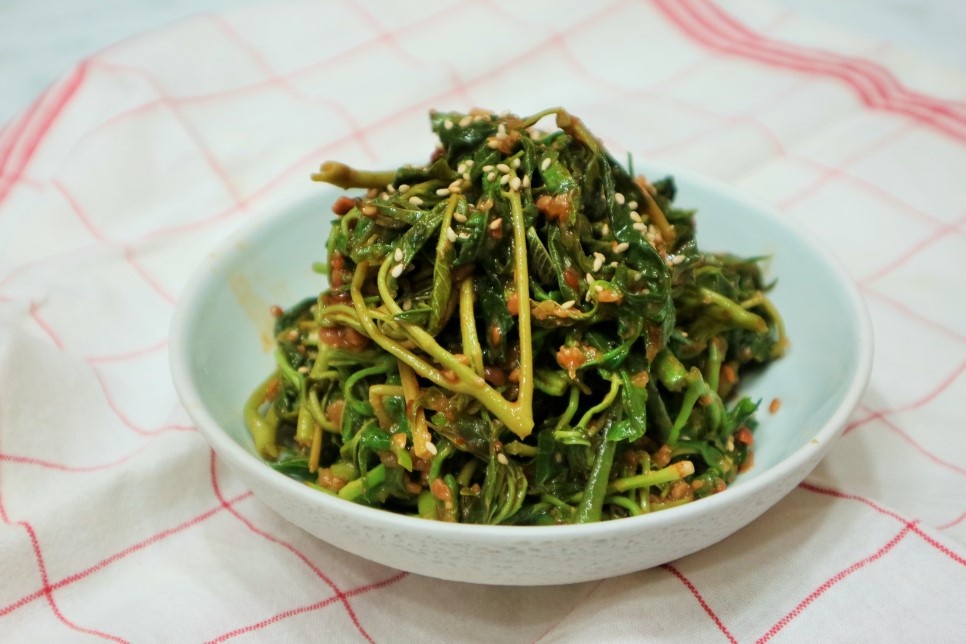 Karena kita menggunakan pucuk yang sangat muda dan empuk untuk resep ini, teksturnya sangat gurih dan menyenangkan saat dikunyah. Tekstur kenyal namun lembut memberikan sensasi yang luar biasa di mulut. Jika Anda merasa rasa pahitnya sedikit kuat, Anda bisa menambahkan sedikit lebih banyak Gochujang dalam bumbu atau menambahkan sedikit gula untuk menyeimbangkan rasa.