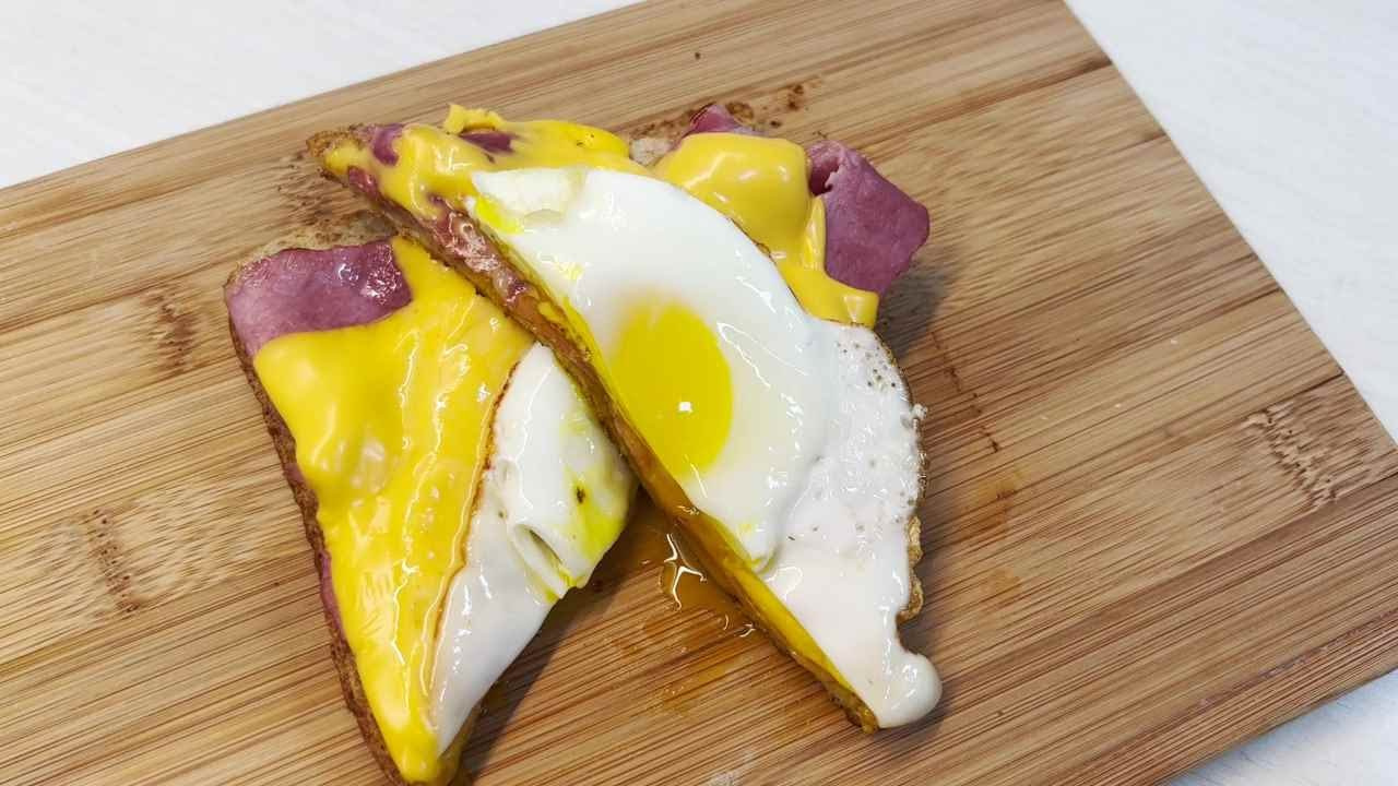 Dengan hati-hati, letakkan telur mata sapi yang sudah matang di atas keju. Penting untuk meletakkannya dengan lembut agar kuning telur tidak pecah.