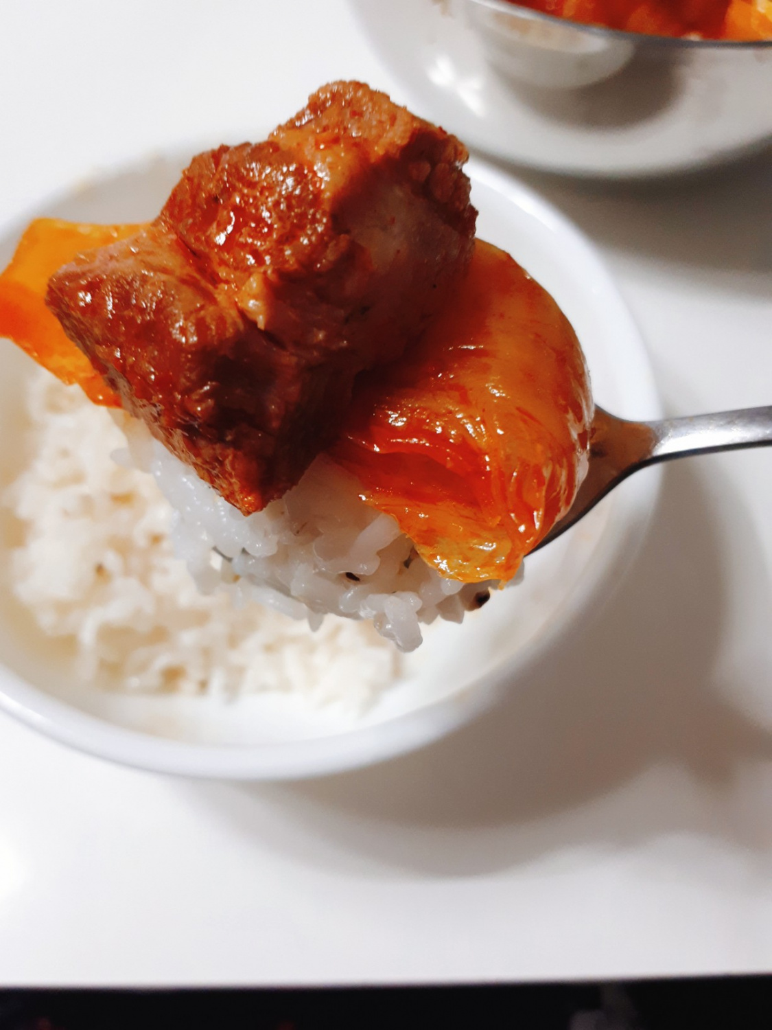 Kami persembahkan hidangan semur yang luar biasa, memadukan rasa gurih mendalam dari kimchi yang sudah tua dan terfermentasi dengan sari daging dari potongan punggung babi yang tebal. Dengan menggunakan saus galbi siap pakai, resep ini sangat mudah dibuat bahkan oleh juru masak pemula sekalipun untuk mendapatkan hasil yang sempurna. Hidangan ini pasti akan menjadi favorit para pencinta nasi! Sangat cocok dinikmati bersama semangkuk nasi hangat.