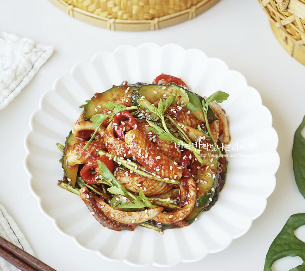 Salad cumi yang menyegarkan ini, dengan aroma harum dari daun minari, menawarkan keseimbangan sempurna antara rasa pedas, asam, dan manis. Ini adalah hidangan pembuka yang fantastis yang merangsang nafsu makan, menjadikannya lauk yang ideal untuk nasi atau pendamping yang lezat untuk minuman.