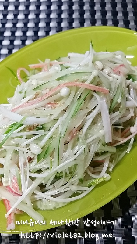 Nikmati salad timun dan kepiting imitasi yang segar dan renyah ini, dibuat dengan bahan-bahan sederhana untuk melawan panas musim panas. Saus yang asam berpadu sempurna dengan tekstur timun, kepiting imitasi, dan jamur enoki, menjadikannya hidangan pendamping atau hidangan pembuka yang ideal.