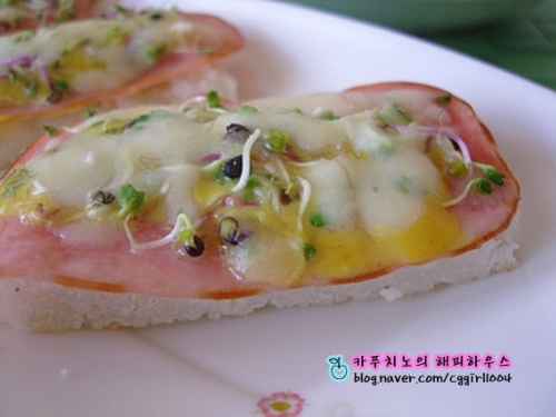 Bahan Sandwich Terbuka Kue Beras- 1/2 potong kue beras Baekseolgi, iris tipis