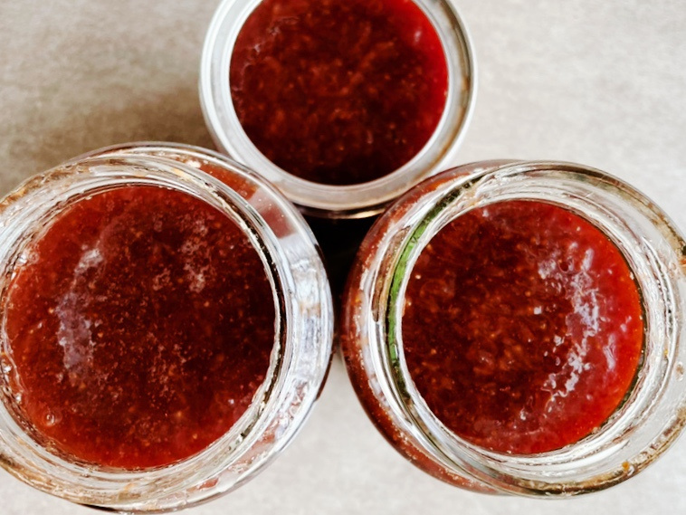 Busa yang ada sebelumnya kini hampir seluruhnya menghilang. Setelah selai mendidih lembut, matikan api. Dengan hati-hati tuangkan selai panas ke dalam toples yang sudah disterilkan, isi hingga penuh, dan segera pasang tutupnya untuk menciptakan segel.