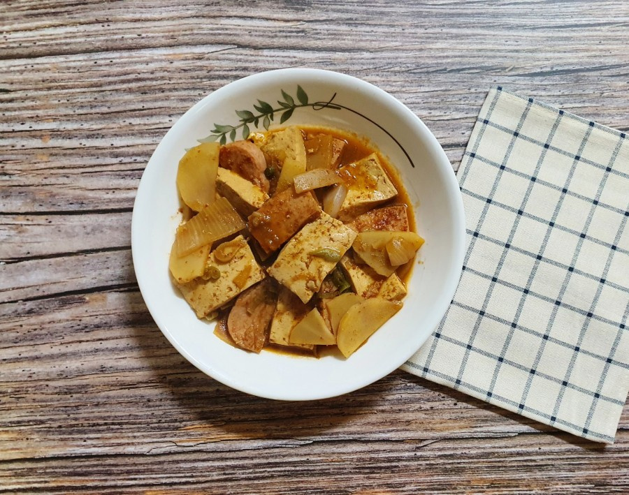 Semur tahu dan spam yang lezat ini sangat nikmat, Anda tidak akan memerlukan hidangan pendamping lainnya! Dimasak perlahan dalam saus yang lezat, hidangan ini berpadu sempurna dengan semangkuk nasi hangat. Makanan yang benar-benar memuaskan.
