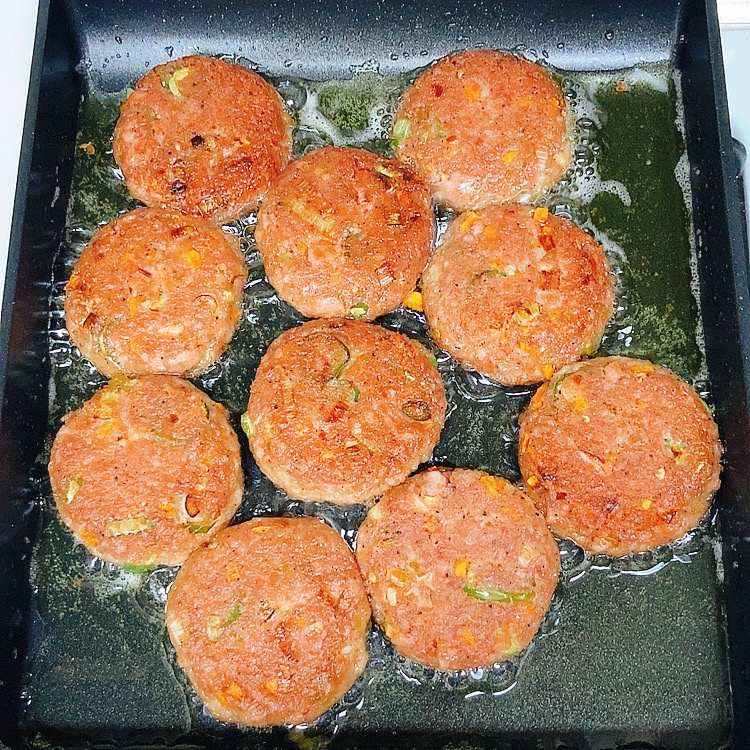 Letakkan Spam Jeon yang sudah dibentuk dengan hati-hati ke dalam minyak panas. Kecilkan api menjadi sedang-rendah. Panas yang lebih rendah ini memastikan Spam Jeon matang hingga ke tengah sambil mengembangkan bagian luar yang renyah.