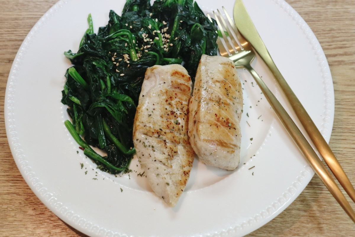 Steak Dada Ayam dengan Bayam Tumis Mentega