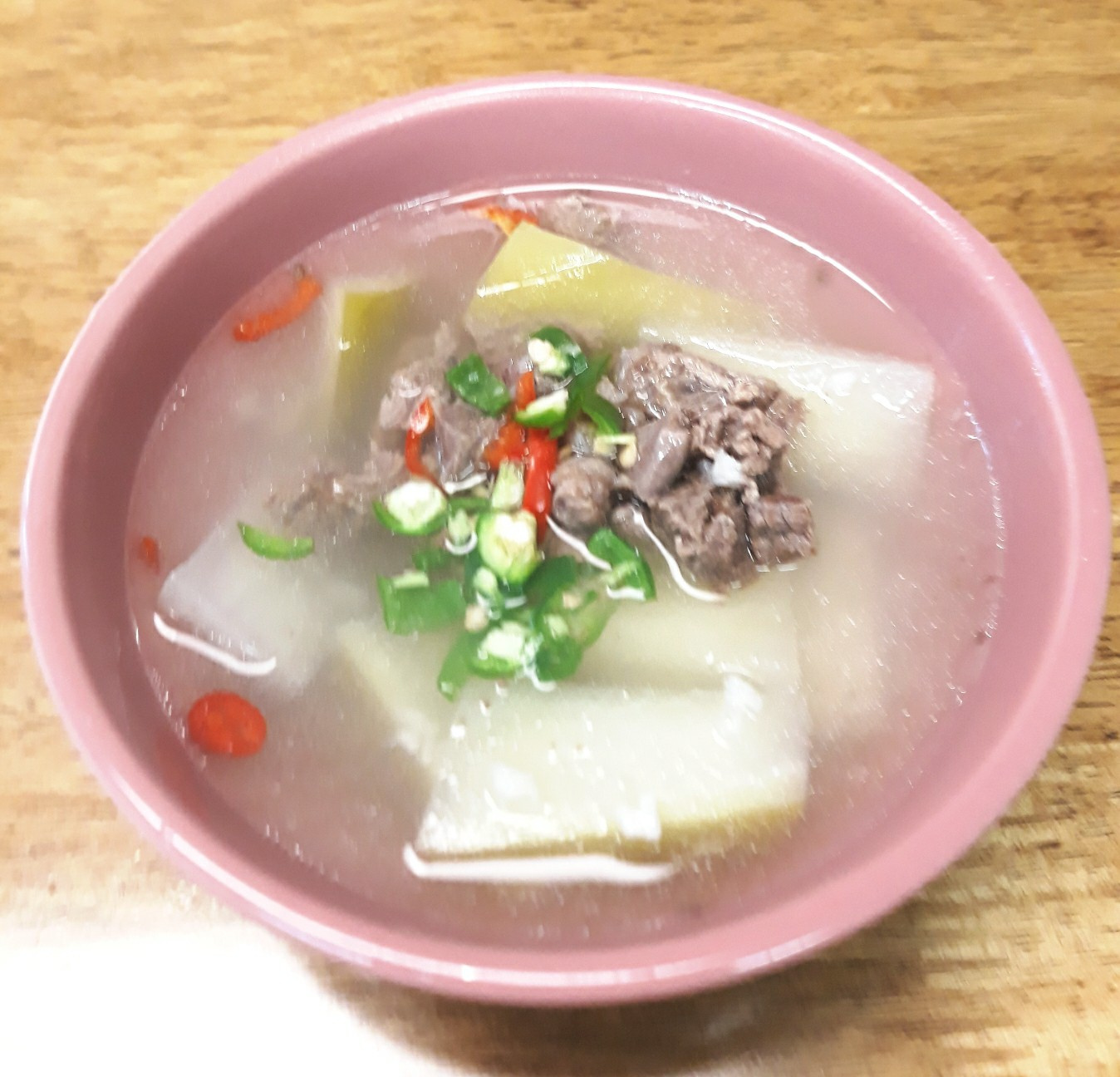 Mempersembahkan sup daging sapi dan lobak yang bening dan ringan, dibuat tanpa menggoreng daging sapi dalam minyak wijen untuk rasa yang benar-benar sehat. Resep ini menonjolkan rasa alami bahan-bahan dengan merebusnya secara perlahan. Ini adalah hidangan yang menenangkan, sempurna untuk menghangatkan badan di hari yang dingin atau saat Anda membutuhkan sesuatu yang lembut untuk perut Anda.