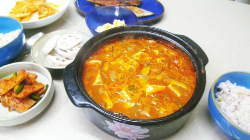 Terakhir, tambahkan tahu potong dadu dan irisan cabai Cheongyang. Aduk perlahan untuk menggabungkan tanpa merusak tahu. Masak lagi selama 2-3 menit agar cabai meresapkan rasa pedasnya ke dalam sup. Sebagai sentuhan akhir, tambahkan sejumput garam jika perlu untuk menyempurnakan rasa. Sup daging sapi doenjang gaya restoran yang lezat kini siap dinikmati! Sajikan selagi hangat bersama nasi.