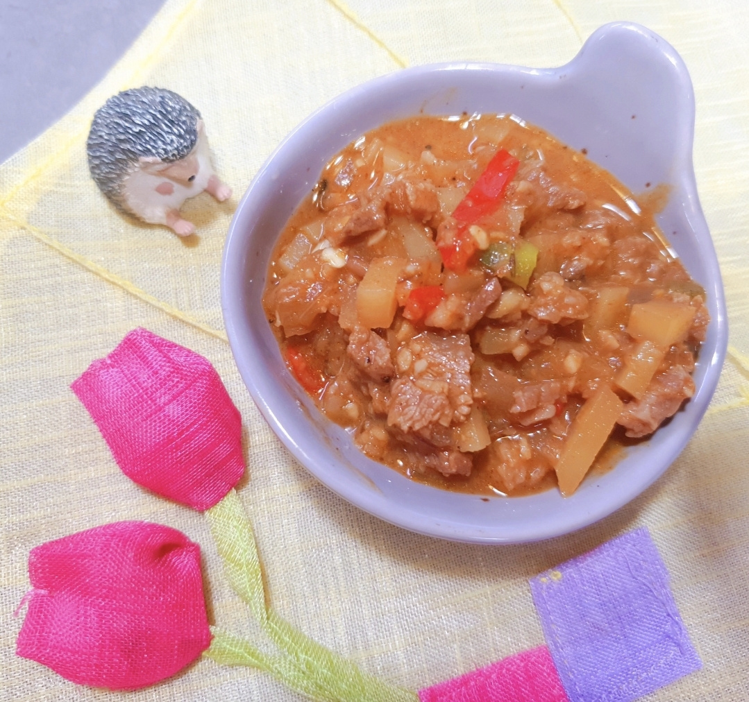 Setelah saus mulai mendidih perlahan, masukkan daging sapi yang sudah dimarinasi dan kentang potong dadu. Masak dengan api sedang-rendah selama sekitar 5-7 menit, atau hingga kentang empuk. Aduk daging sapi agar tidak menggumpal saat dimasak.