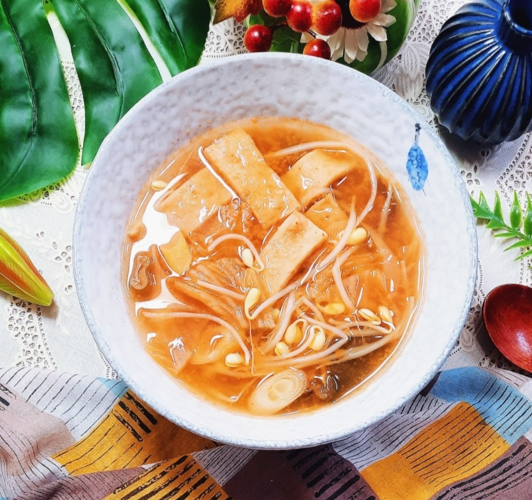 Dan inilah hasilnya – Sup Kimchi Otak-Otak yang lezat, dibuat dengan kimchi yang asam, otak-otak yang kenyal, dan tauge segar! Kuah panas dan pedasnya sungguh memikat, menjadikannya hidangan sempurna untuk menghangatkan Anda di hari yang dingin. Perpaduan otak-otak yang gurih dan lembut dengan kimchi yang asam sangat fantastis, dan penambahan tauge membuat kuah menjadi sangat bersih dan menyegarkan. Sup Kimchi Otak-Otak yang lezat ini pasti akan membuat Anda menghabiskan nasi dalam sekejap. Pastikan Anda mencobanya!